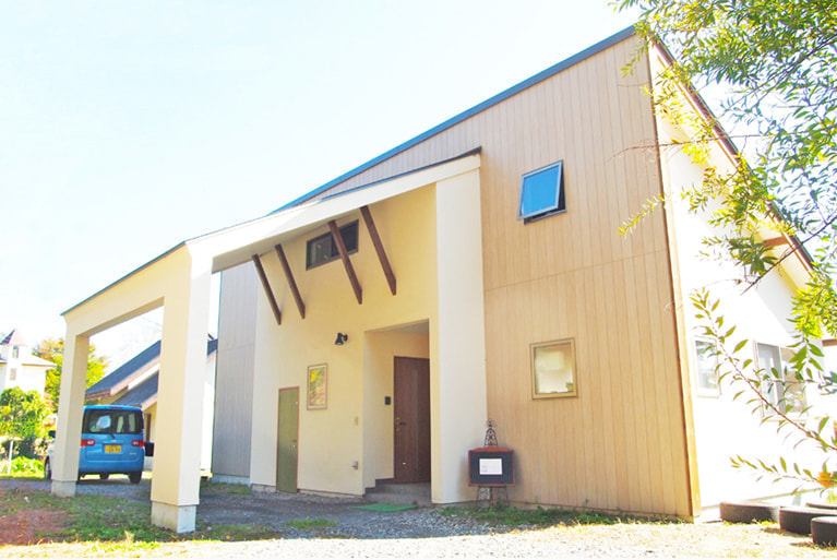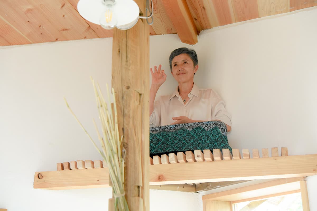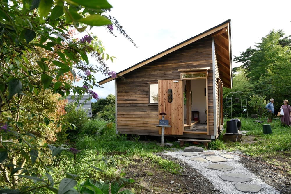 地元の有志が手づくりした6畳程の小舎。無垢の木と漆喰でできた居心地のよい小空間です。