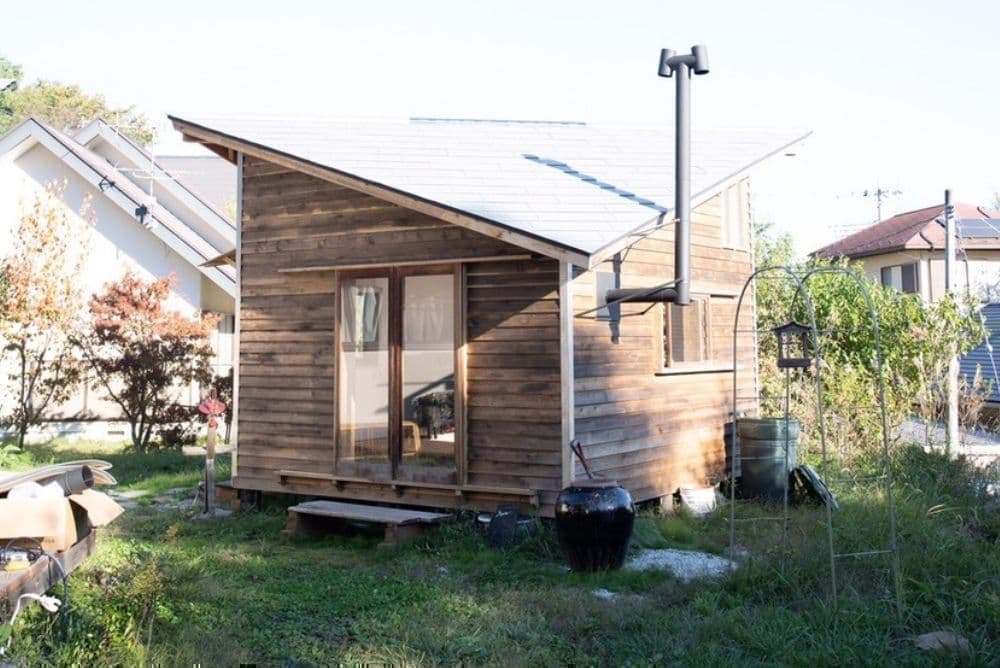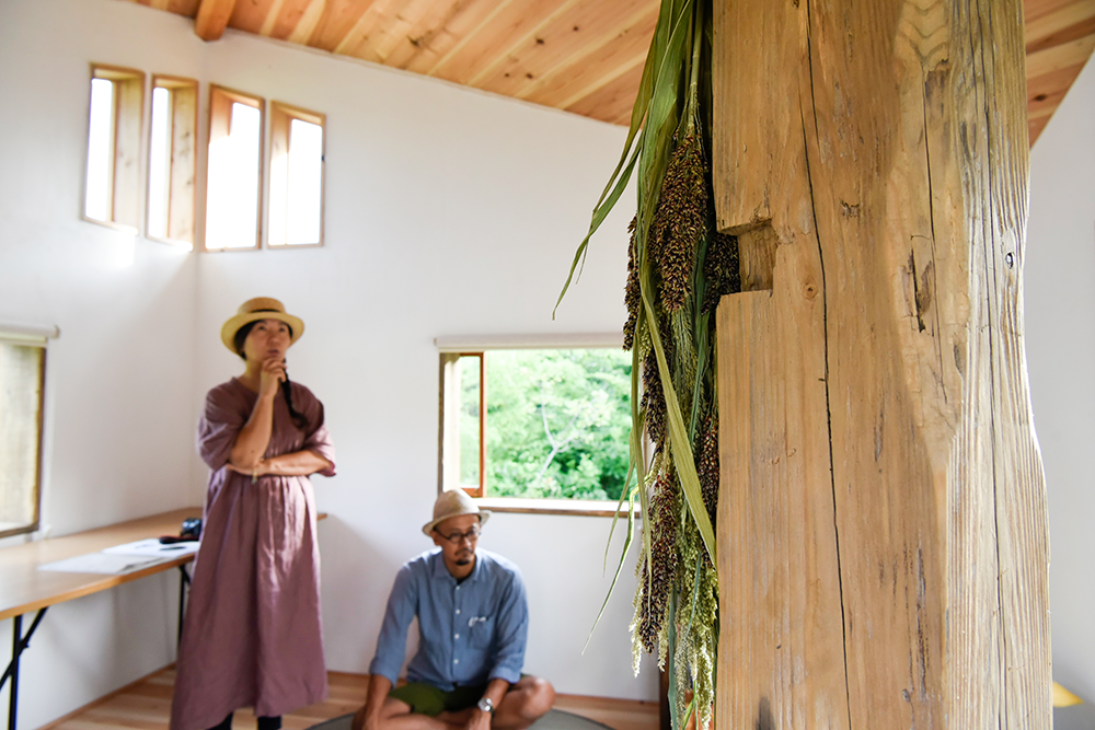 地元の有志が手づくりした6畳程の小舎。無垢の木と漆喰でできた居心地のよい小空間です。